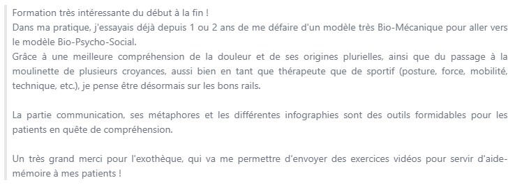 “Je recommanderai vivement cette formation à tous ceux qui travaillent avec des gens qui ont mal, même en dehors du sport”.